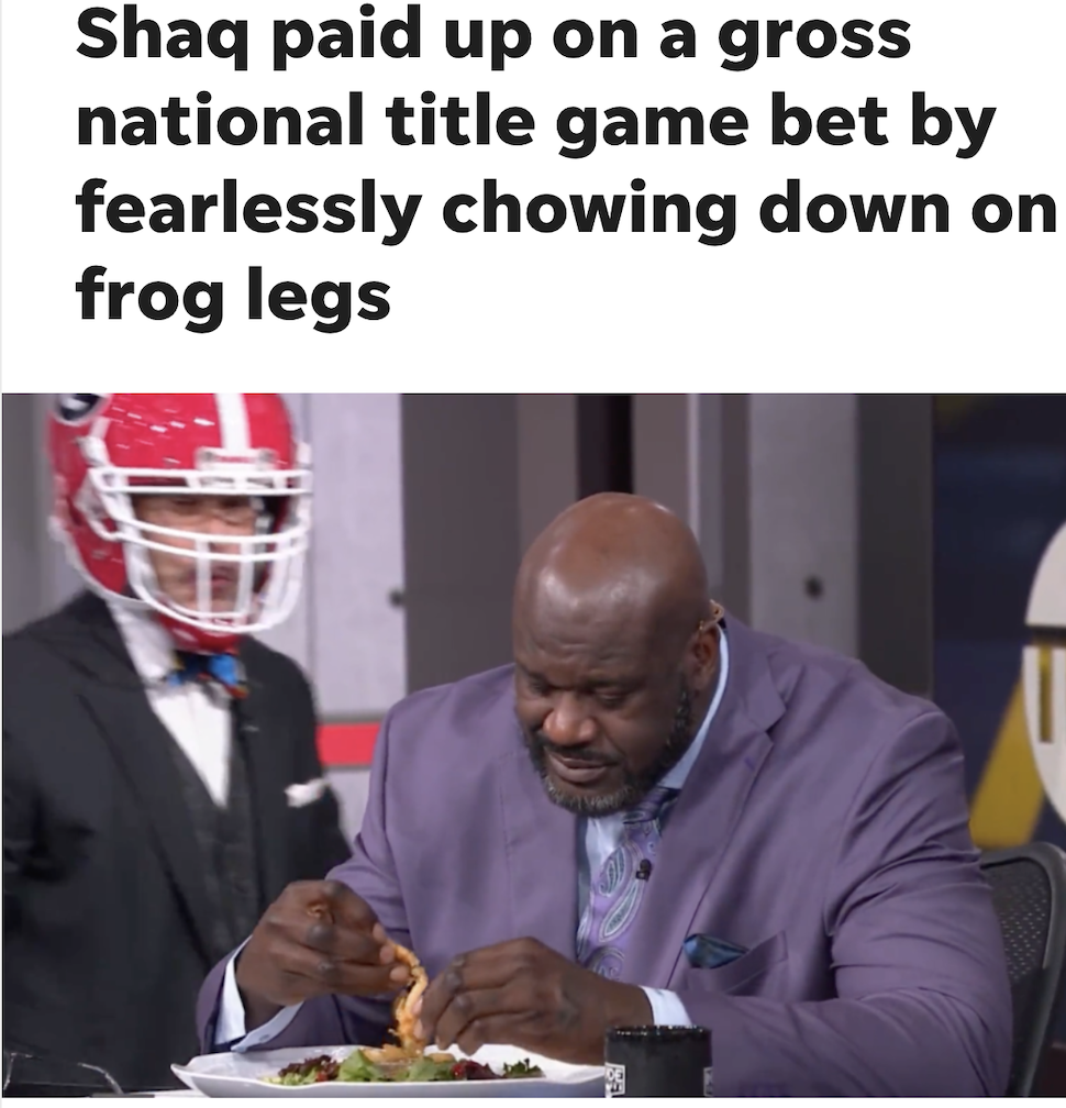We agree that it’s funny to watch Shaq scarf down frog legs after losing a bet on the 2023 CFB Championship, but even news about “friendly wagers” feeds the culture of gambling in the USA.