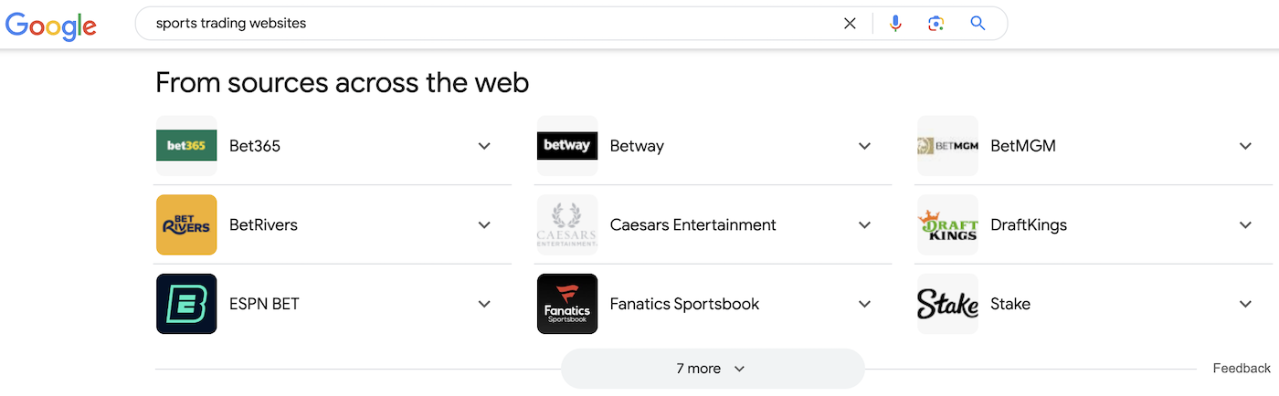 Google algorithms are also not able to draw a distinction between sports trading and sports betting, as a Google search for “sports trading websites” unveils the following collection of unregulated and regulated online sports betting operators: